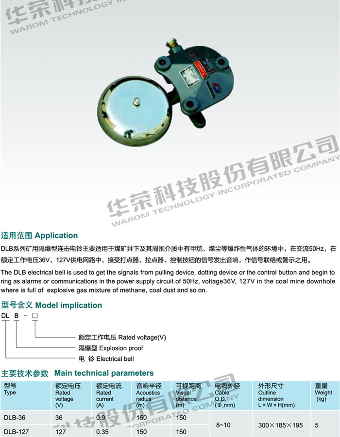 DLB-127、36 礦用隔爆型電鈴