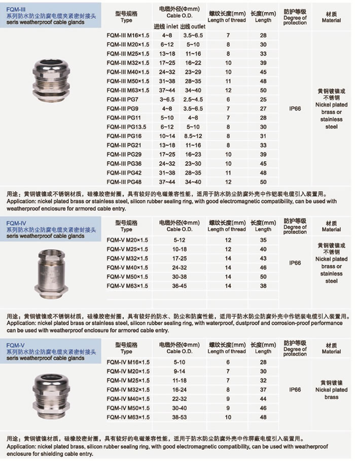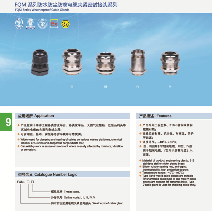 • 產(chǎn)品名稱:FQM系列防水防塵防腐電纜夾緊密封接頭系列