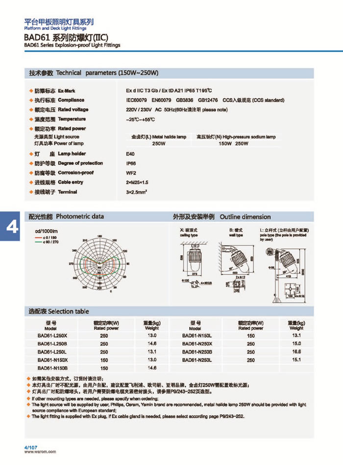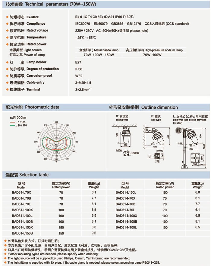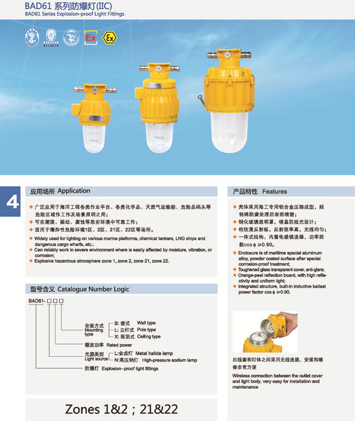 • 產(chǎn)品名稱:BAD61系列防爆燈(IIC)