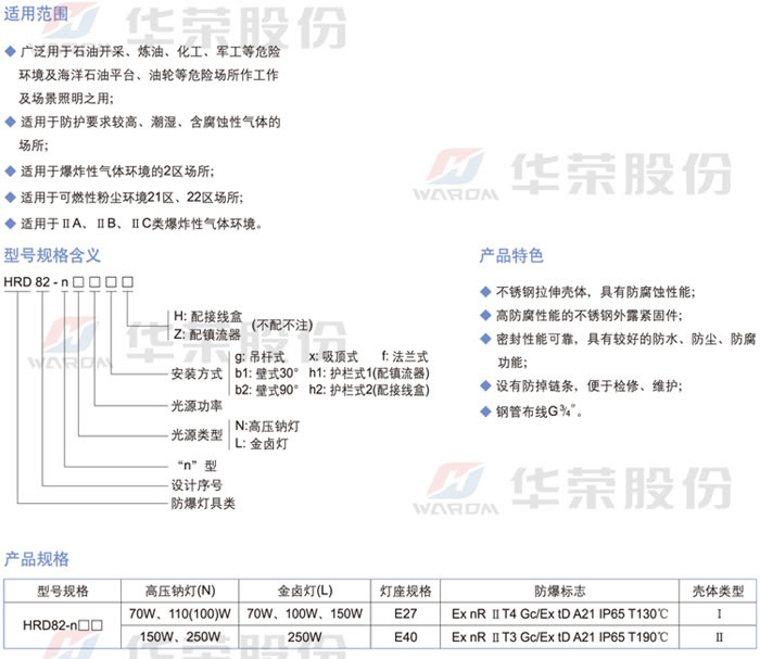 • 產(chǎn)品名稱:HRD82-n“n”型防爆燈(nR)