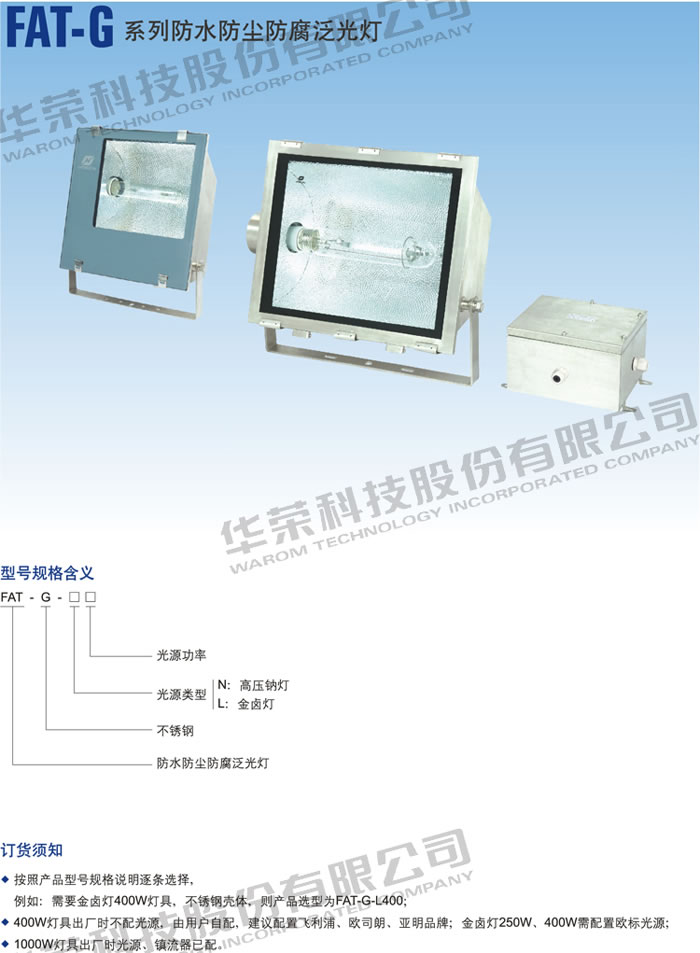 • 產(chǎn)品名稱:FAT-G 系列防水防塵防腐泛光燈