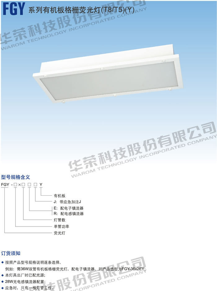 • 產(chǎn)品名稱:FGY 系列有機(jī)板格柵熒光燈(T8 T5)(Y)