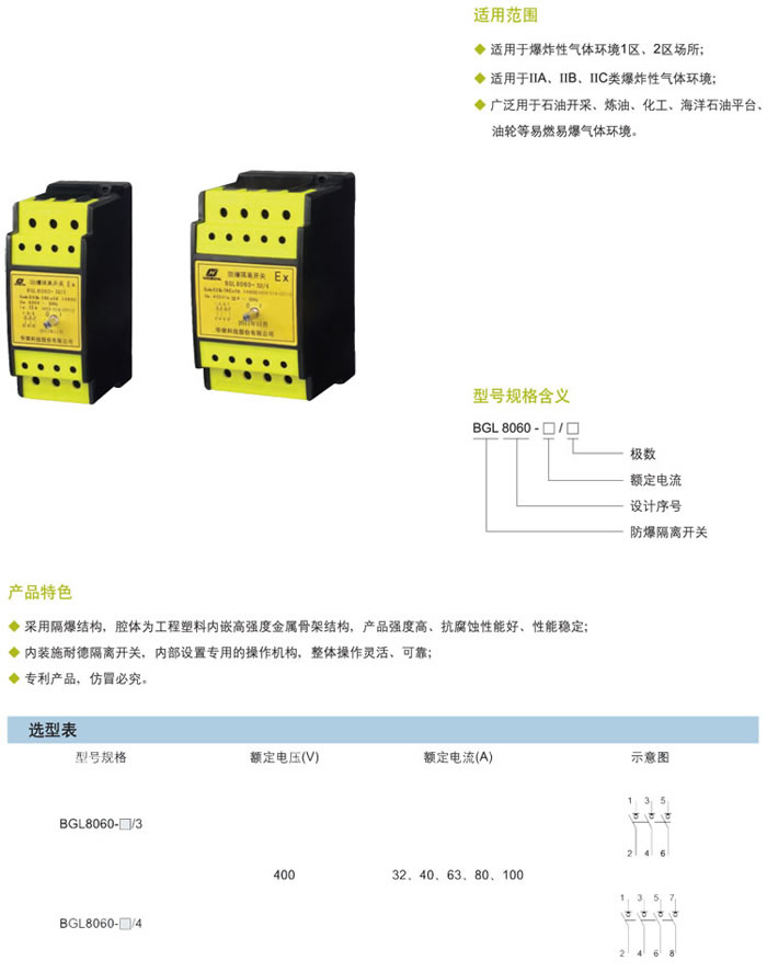 • 產(chǎn)品名稱:BGL8060系列防爆隔離開關模塊