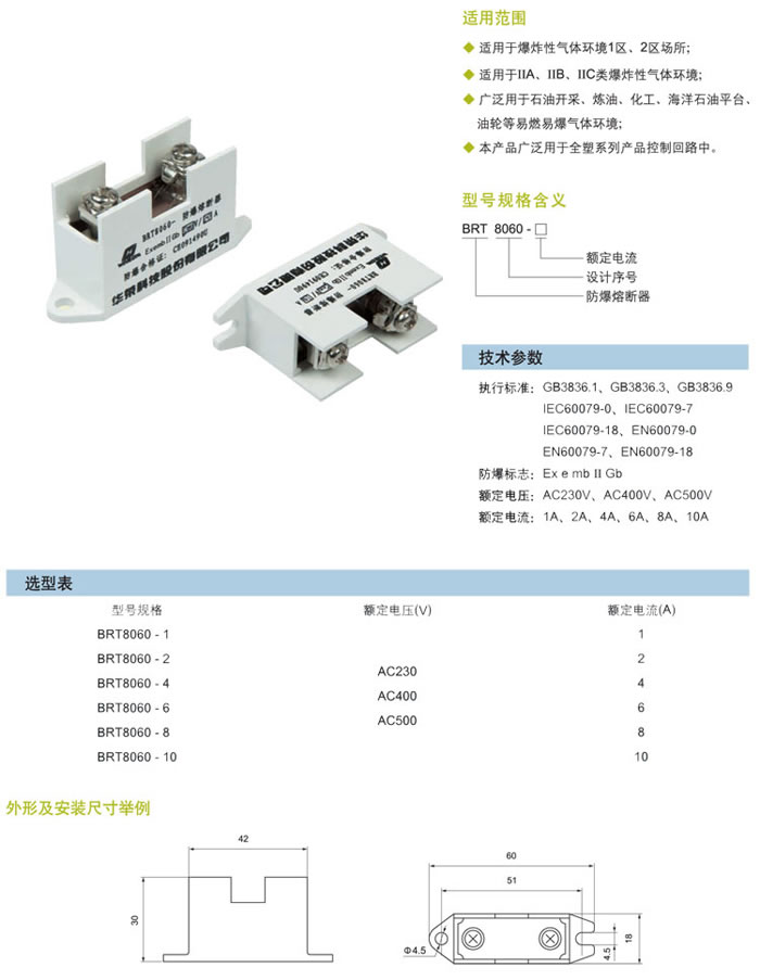 • 產(chǎn)品名稱:BRT8060系列防爆熔斷器模塊