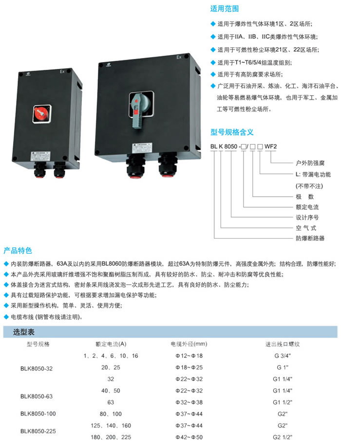 • 產(chǎn)品名稱:BLK8050系列防爆防腐斷路器(ⅡC、tD)