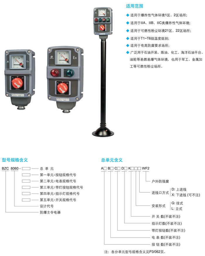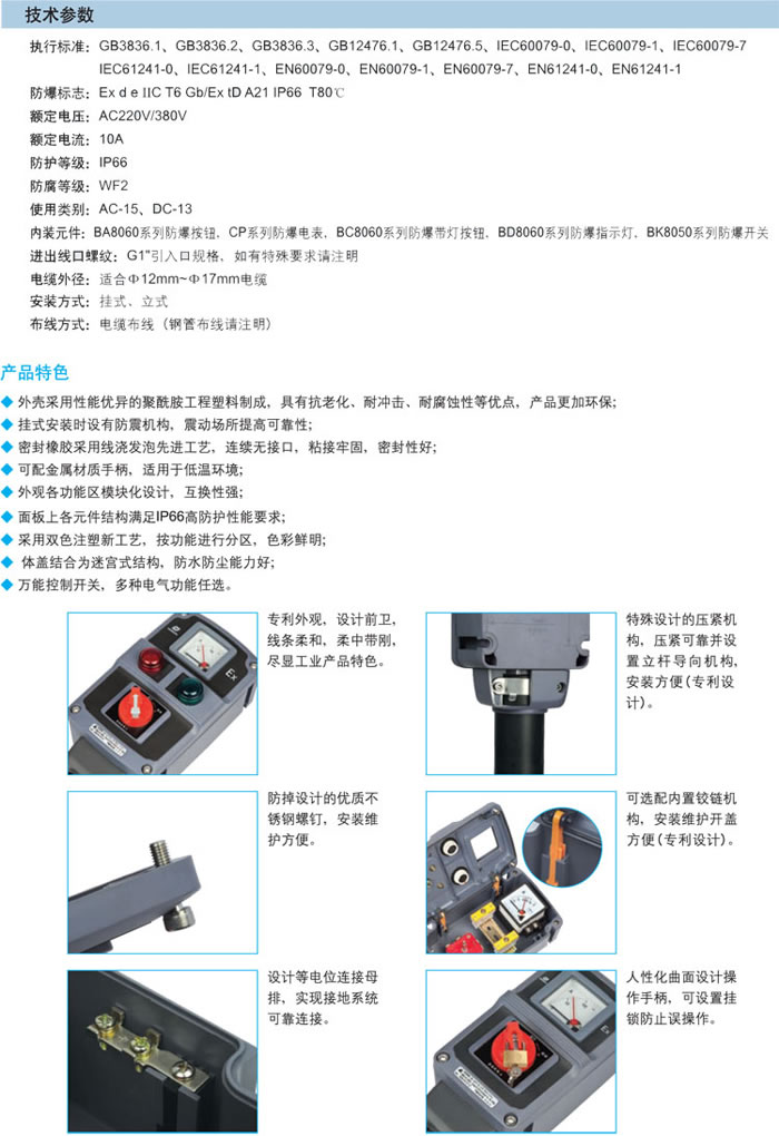 • 產(chǎn)品名稱:BZC8060系列防爆防腐操作柱(ⅡC、tD)