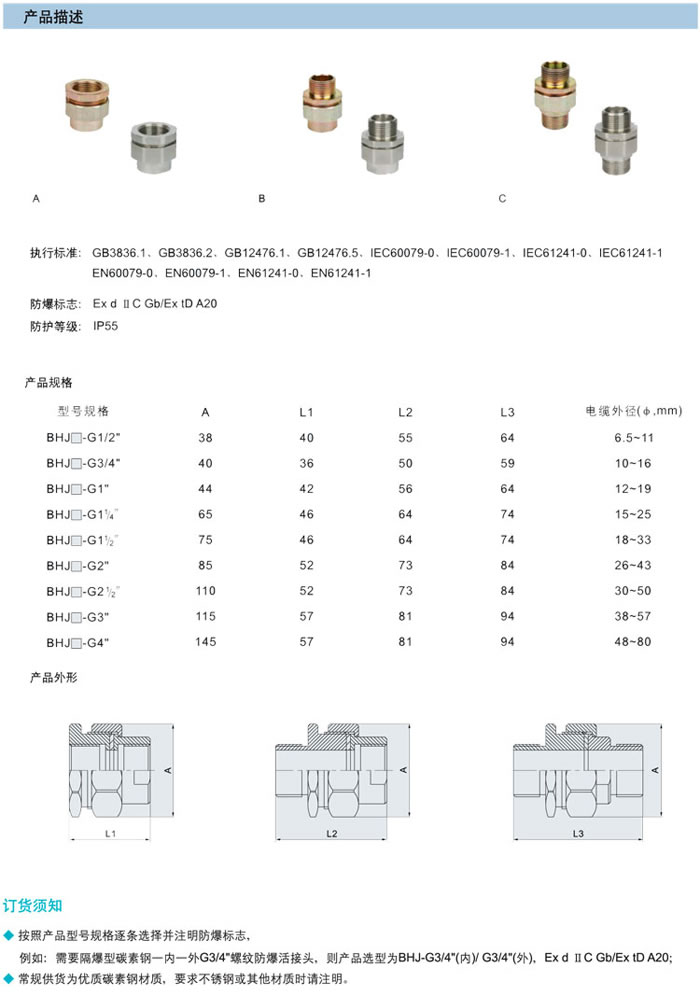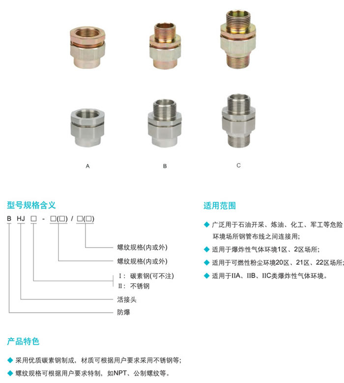 • 產(chǎn)品名稱:BHJ系列防爆活接頭(ⅡC、tD)