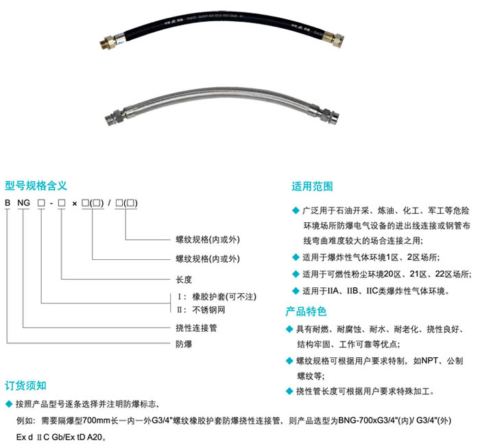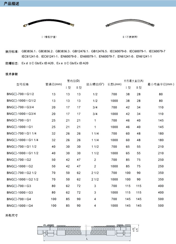 • 產(chǎn)品名稱:BNG系列防爆撓性連接管(d、e、tD)