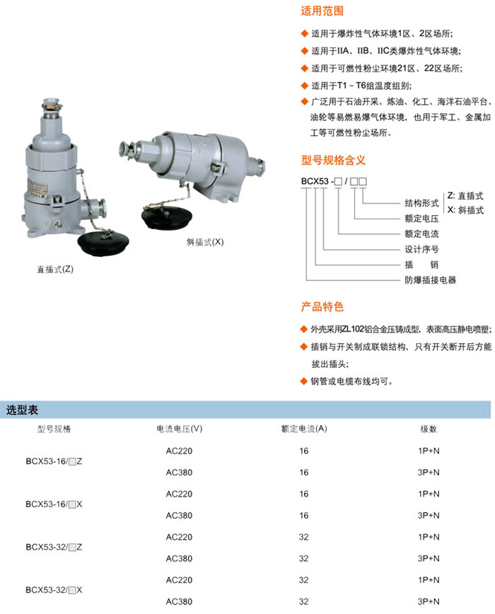 • 產(chǎn)品名稱:BCX53系列防爆插銷(ⅡB、ⅡC、tD)