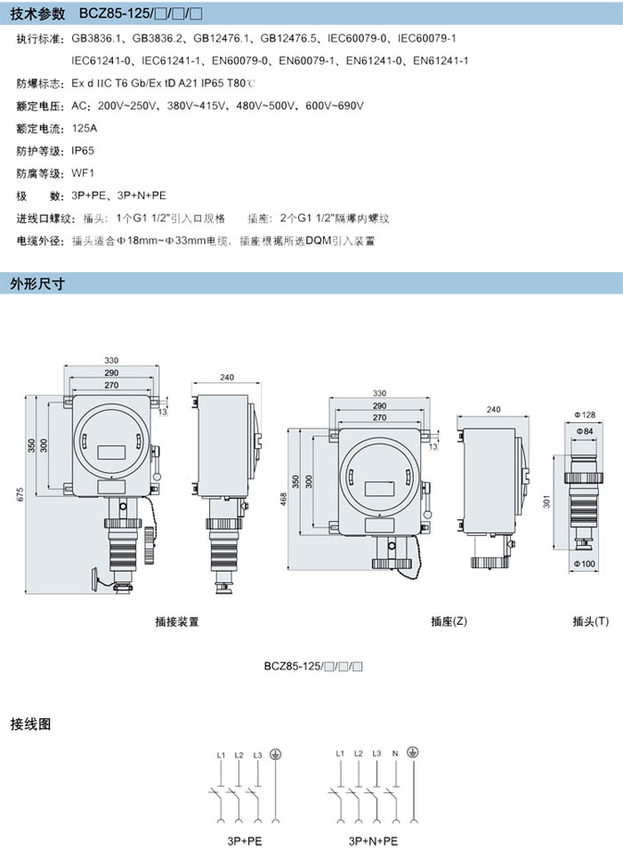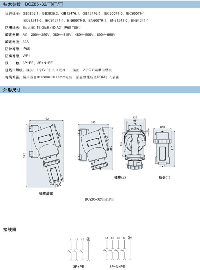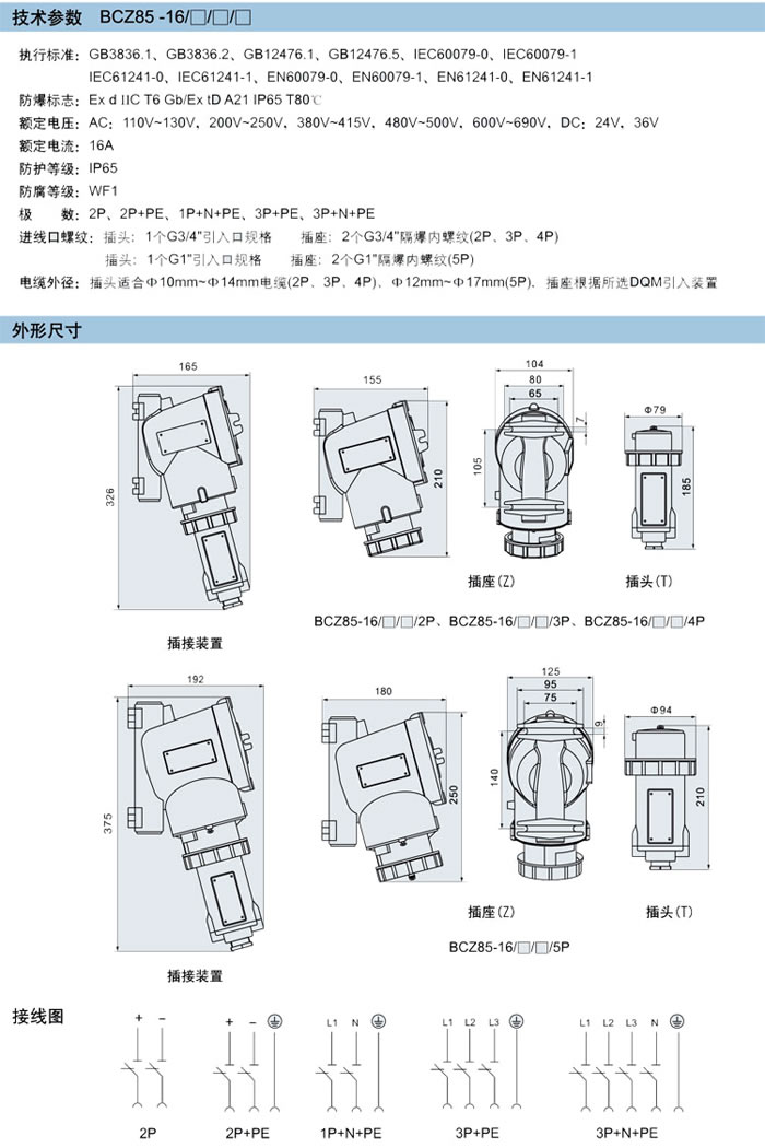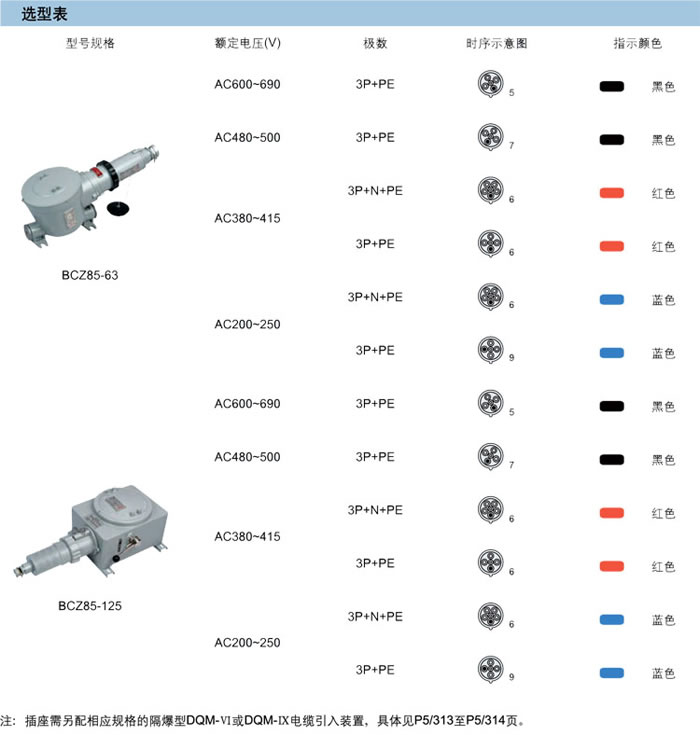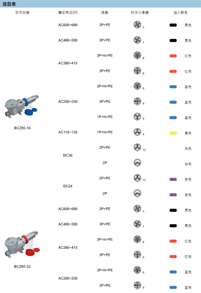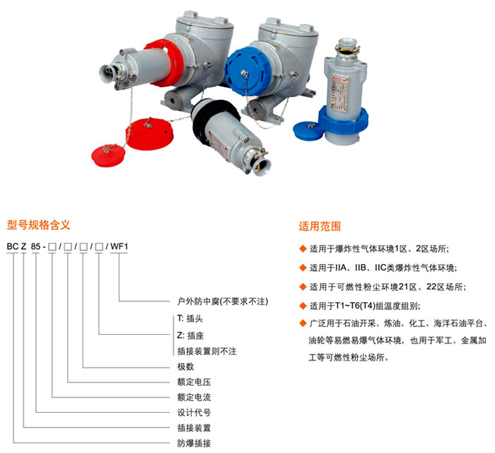 • 產(chǎn)品名稱:BCZ85系列防爆插接裝置(ⅡC、tD)