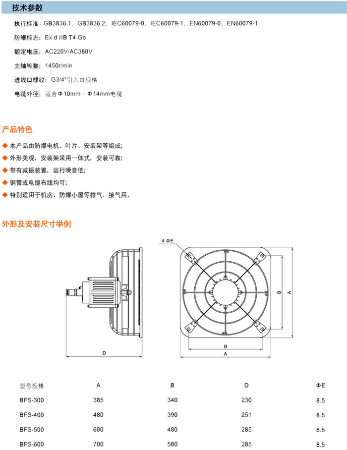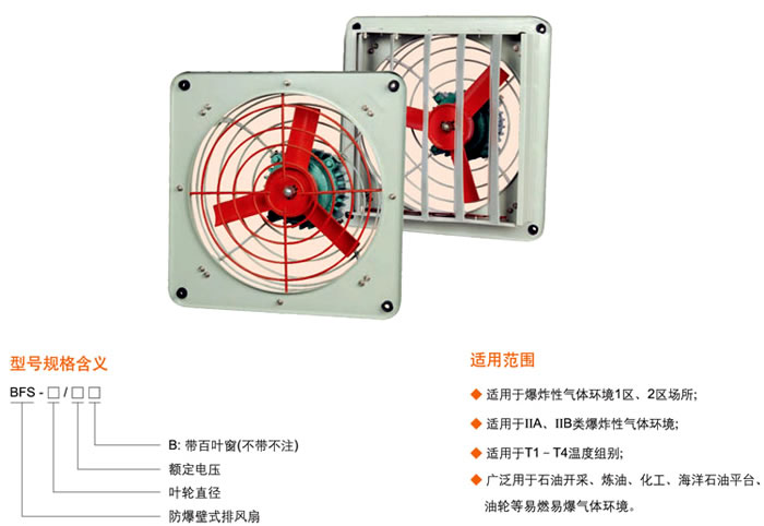 • 產(chǎn)品名稱:BFS系列防爆壁式排風扇(ⅡB)