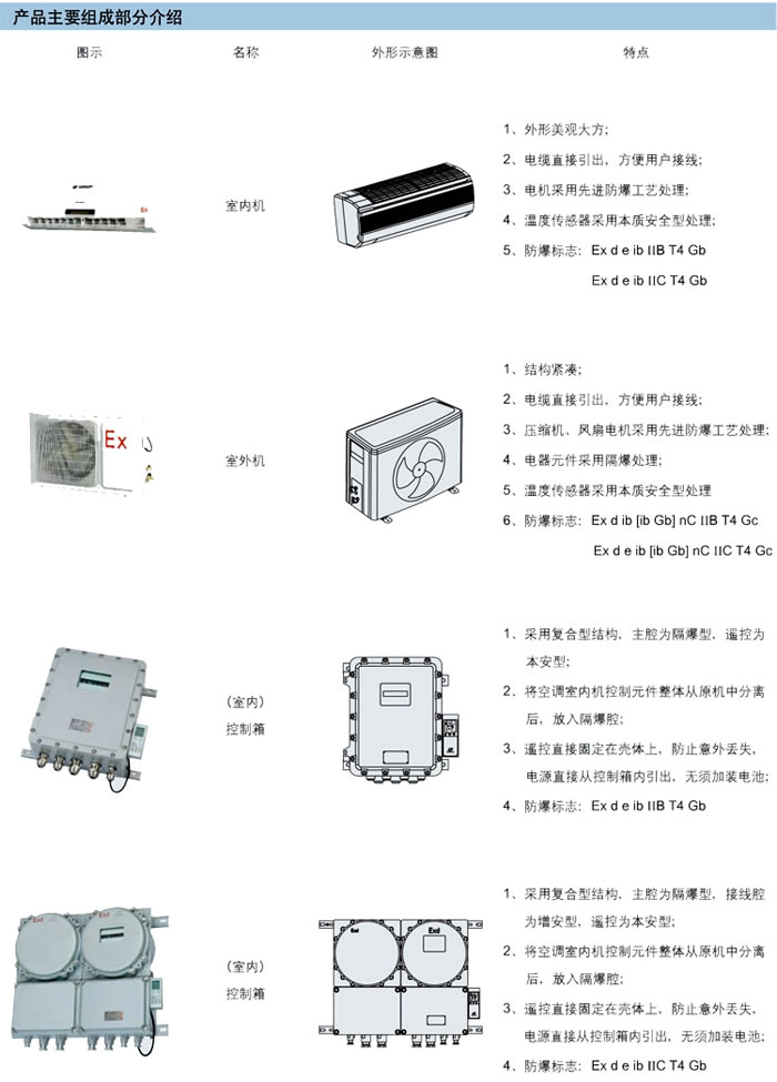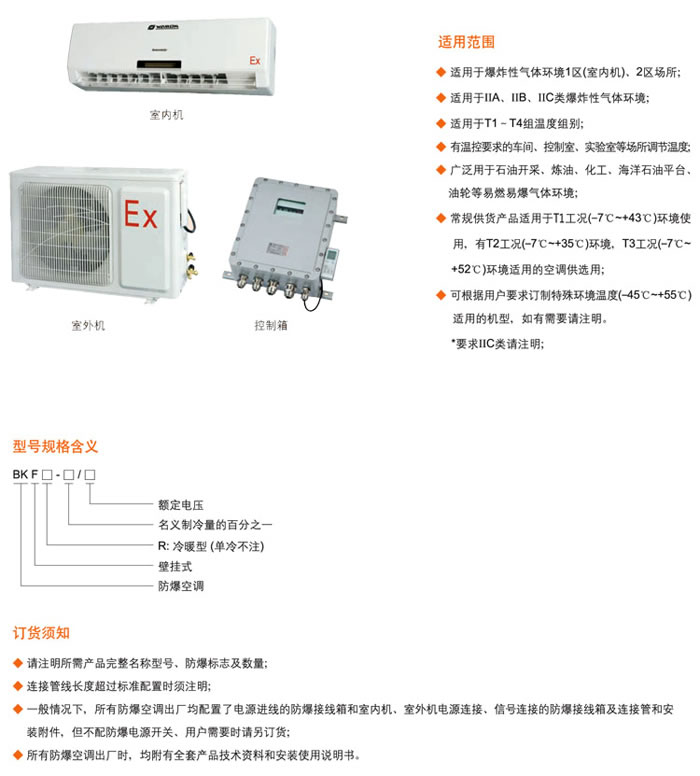 • 產(chǎn)品名稱:BKF(R)系列防爆分體壁掛式空調(diào)(ⅡB、ⅡC)