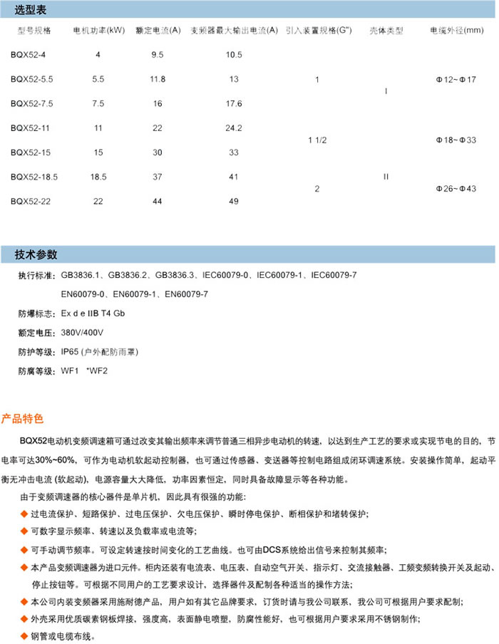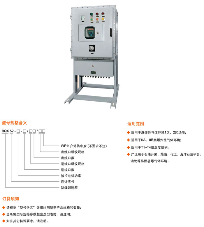 • 產(chǎn)品名稱:BQX52系列防爆變頻調(diào)速器(ⅡB)