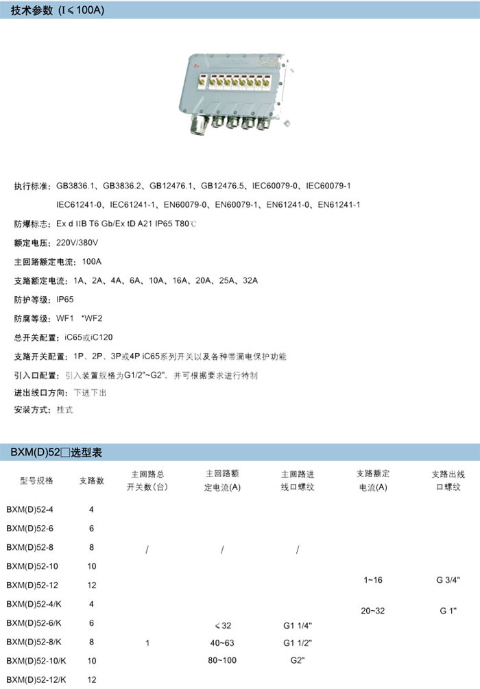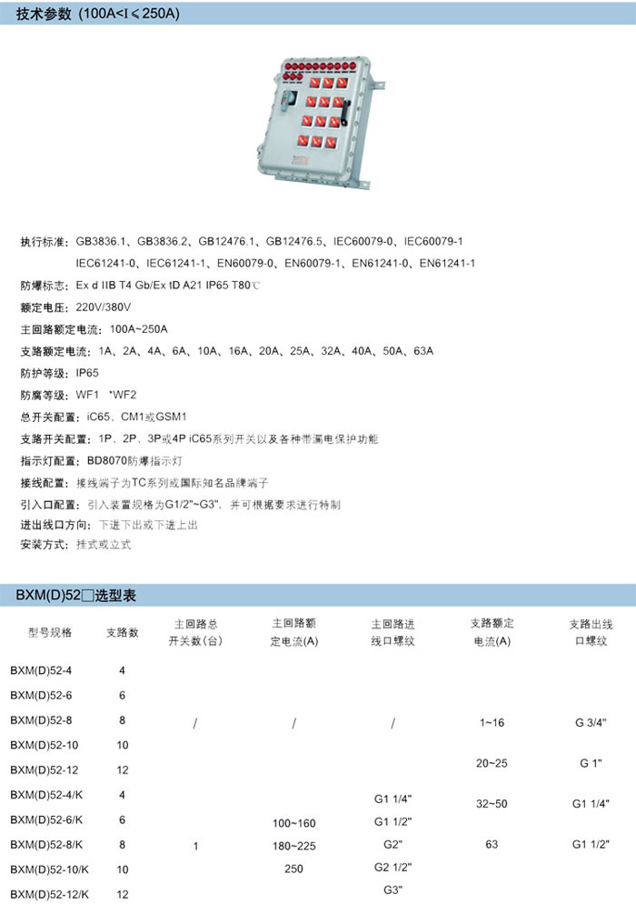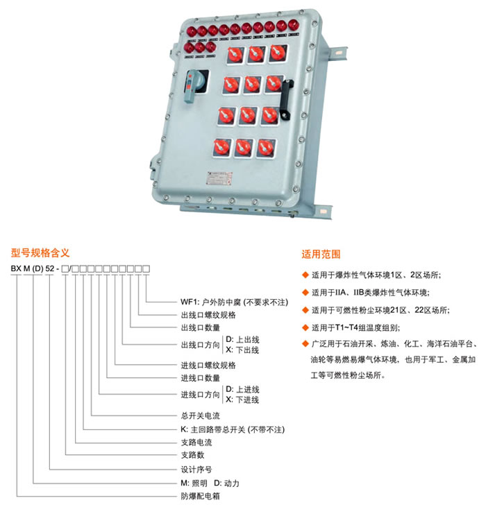 • 產(chǎn)品名稱:BXM(D)52系列防爆照明(動(dòng)力)配電箱(ⅡB、tD、戶內(nèi)、戶外)