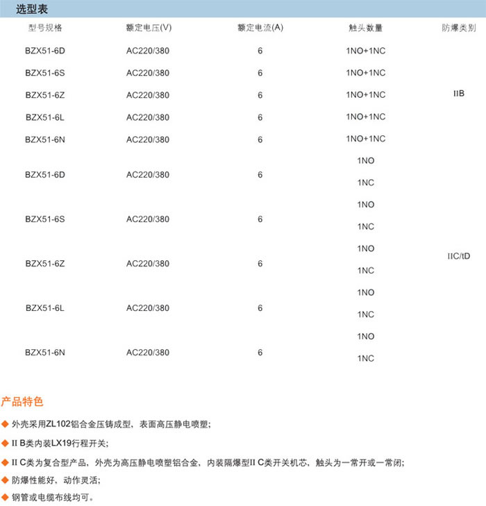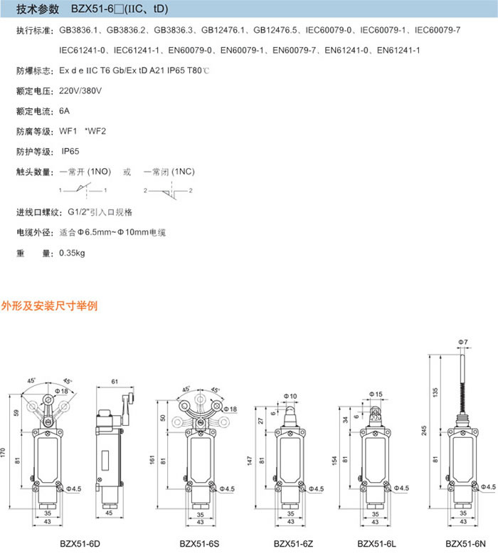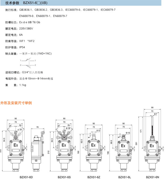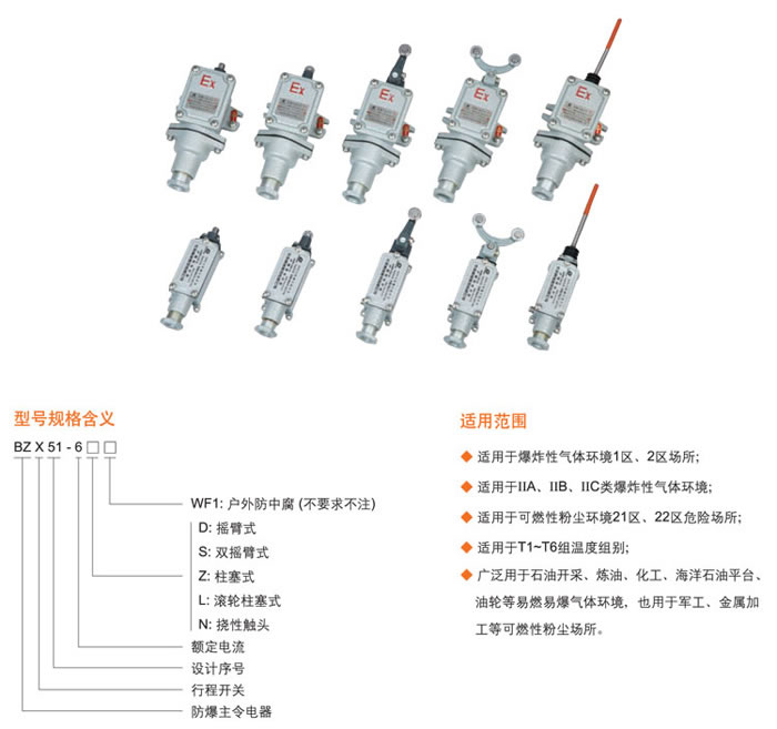 • 產(chǎn)品名稱:BZX51-6系列防爆行程開關(ⅡB、ⅡC、tD)