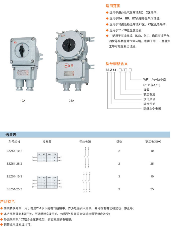 • 產(chǎn)品名稱:BZZ51系列防爆裝轉(zhuǎn)換開(kāi)關(guān)(ⅡC、tD)