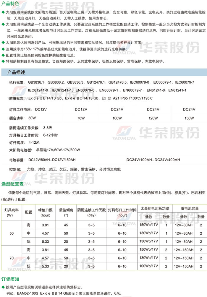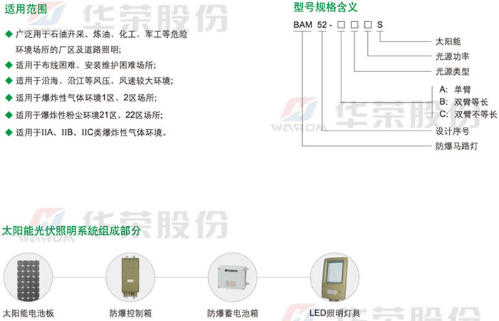 • 產(chǎn)品名稱:BAM52-□S系列防爆馬路燈(太陽能)