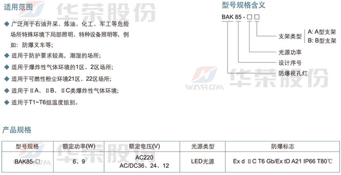 • 產(chǎn)品名稱:BAK85系列防爆高效節(jié)能LED燈(ⅡC)