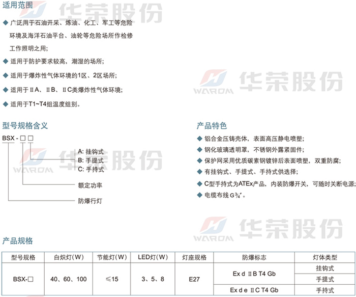 • 產(chǎn)品名稱:BSX系列防爆行燈(ⅡB、ⅡC)