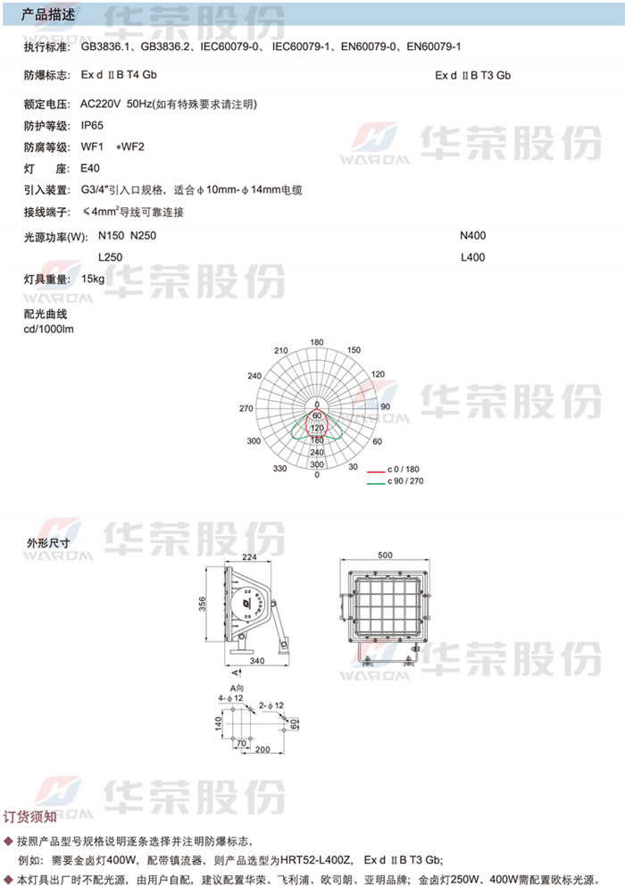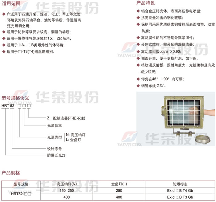 • 產(chǎn)品名稱:HRT52系列防爆泛光燈(ⅡB)