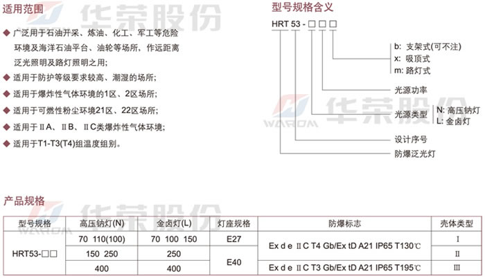 • 產(chǎn)品名稱:HRT53系列防爆泛光燈(ⅡC)