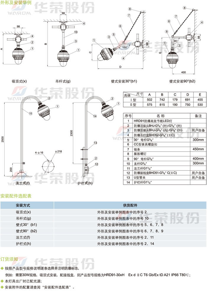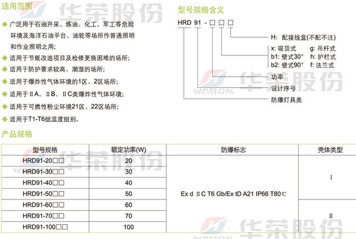• 產(chǎn)品名稱:HRD91系列防爆高效節(jié)能LED燈(ⅡC)