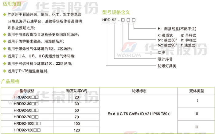 • 產(chǎn)品名稱:HRD92系列防爆高效節(jié)能LED燈(ⅡC)