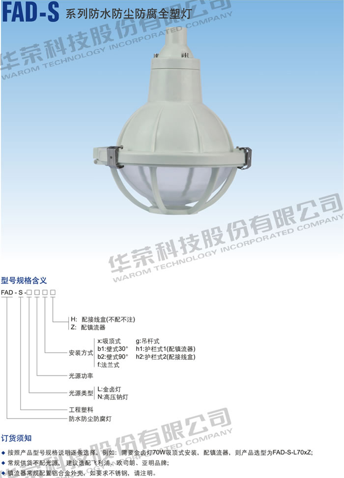 • 產(chǎn)品名稱:FAD-S 系列防水防塵防腐全塑燈