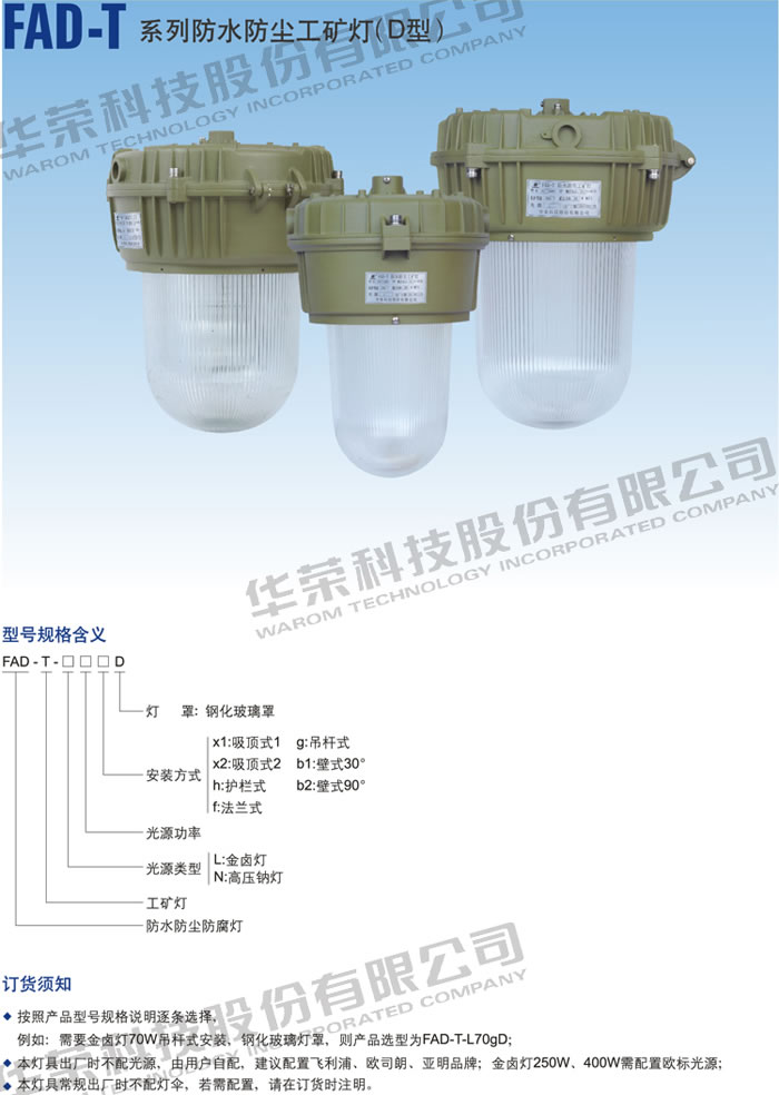 • 產(chǎn)品名稱:FAD-T 系列防水防塵工礦燈(D型)