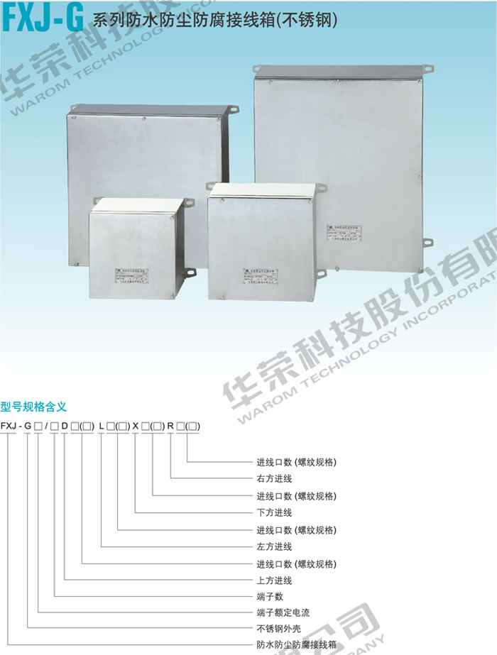 • 產(chǎn)品名稱:FXJ-G 系列防水防塵防腐接線箱(不銹鋼)