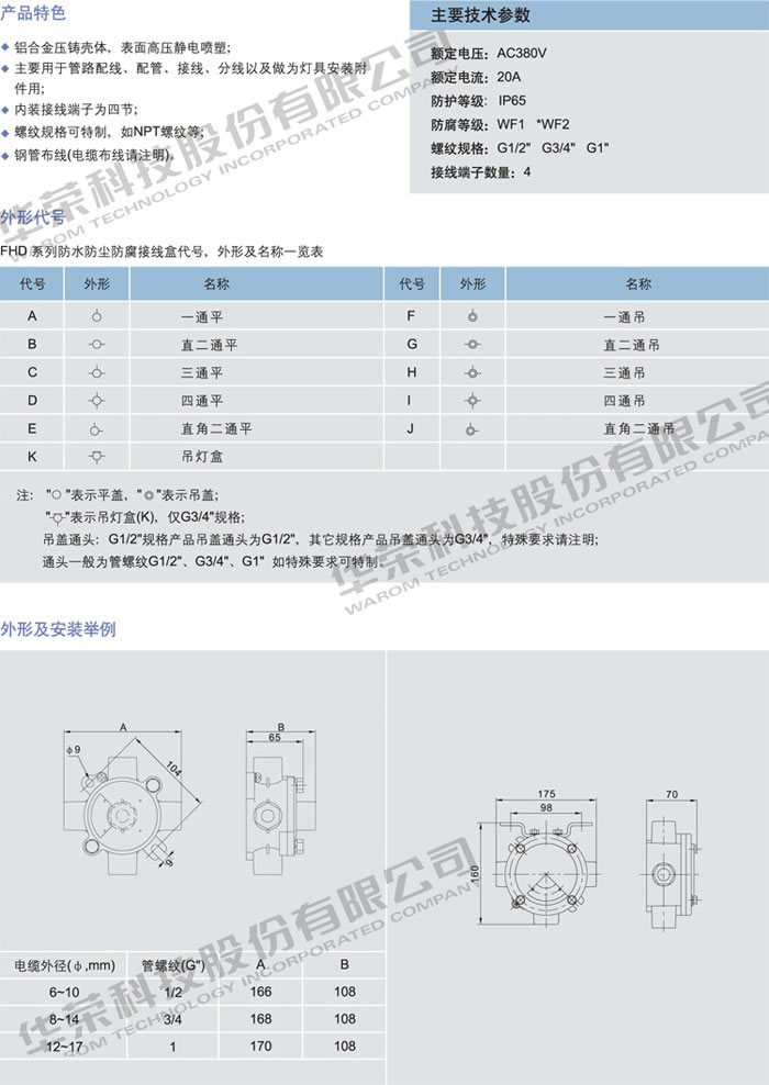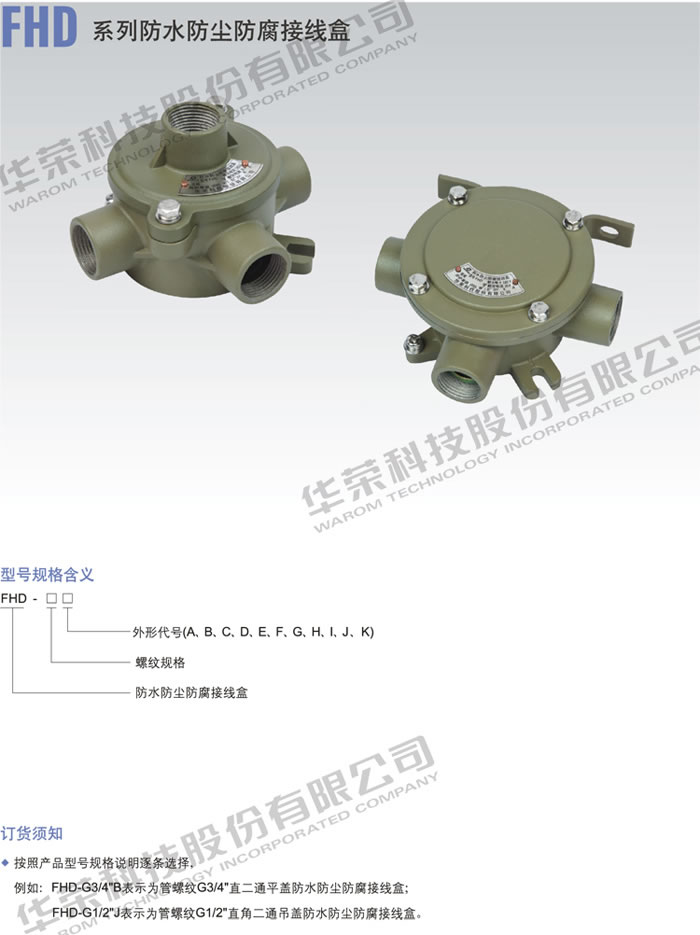 • 產(chǎn)品名稱:FHD 系列防水防塵防腐接線盒