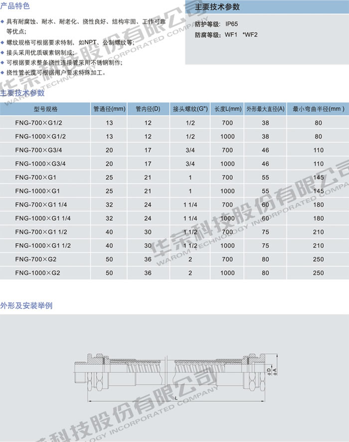• 產(chǎn)品名稱(chēng):FNG 系列防水防塵防腐撓性連接管