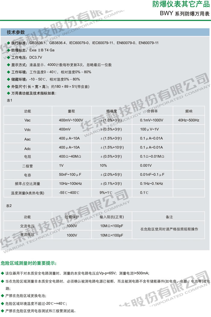 • 產(chǎn)品名稱:BWY 系列防爆萬用表
