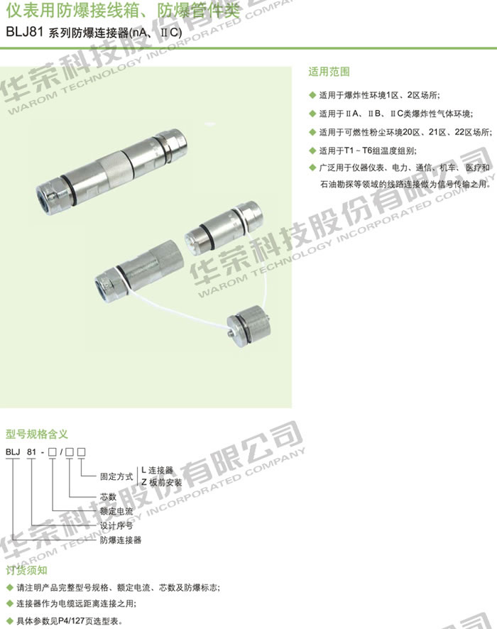 • 產(chǎn)品名稱:BLJ81 系列防爆連接器(nA、ⅡC)