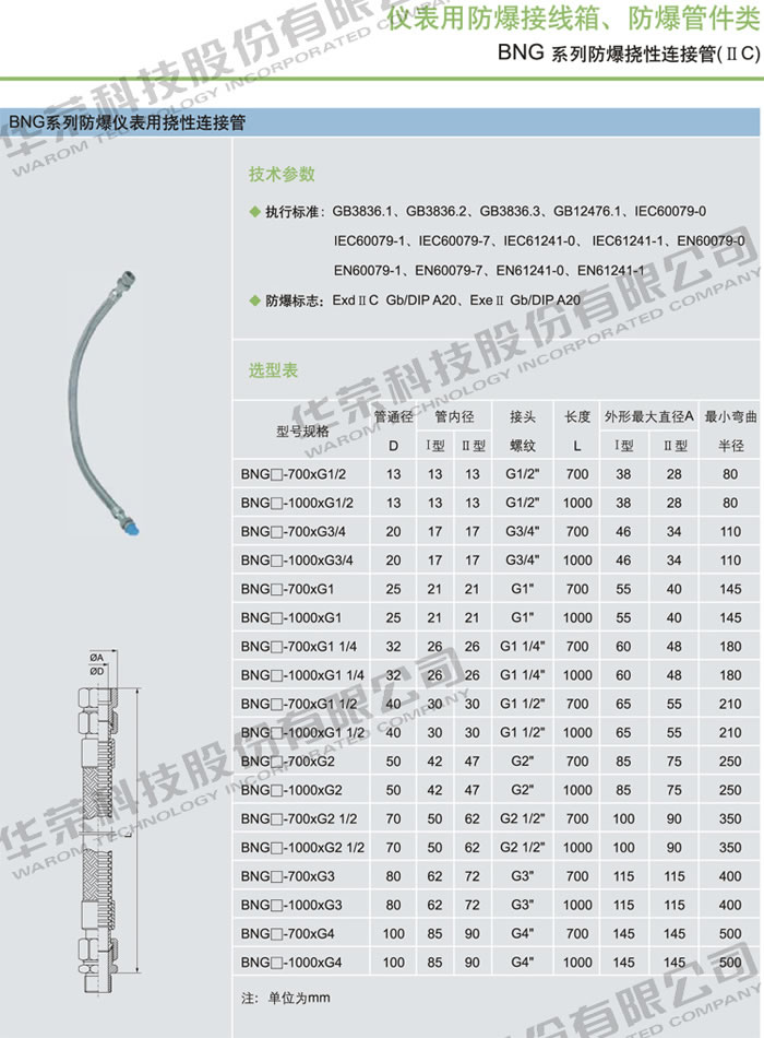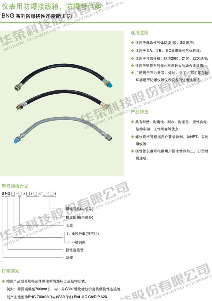 • 產(chǎn)品名稱:BNG 系列防爆撓性連接管(ⅡC)